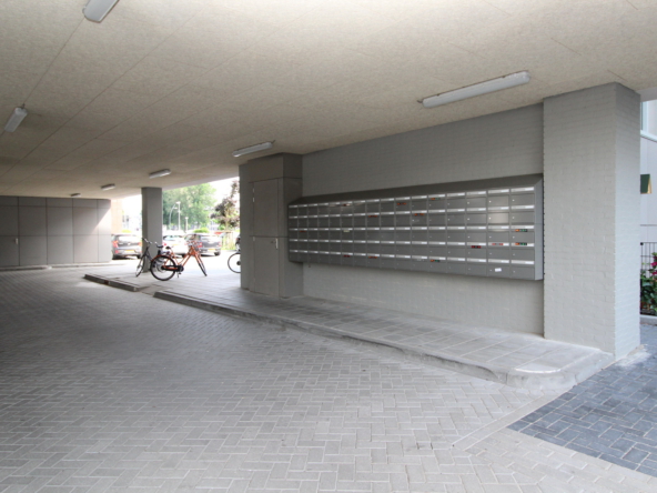 U komt binnen via de algemene entree met beltableau en brievenbussen.